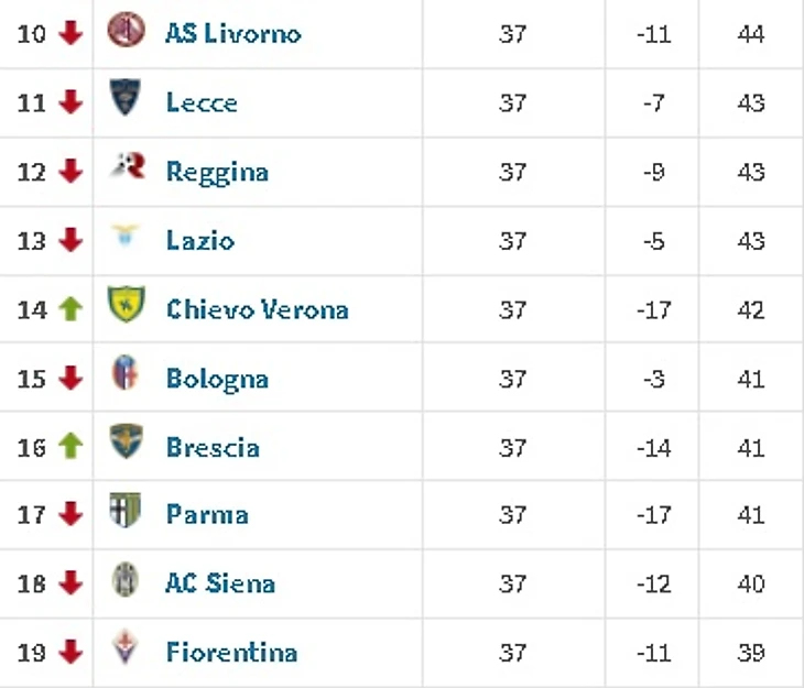 3. Поражение в 24-ом туре. Гол Брешии, победа 2:1. Через 8 минут после этого мяча наш футболист получает жёлтую карточку, вынуждающую пропустить следующий тур.
