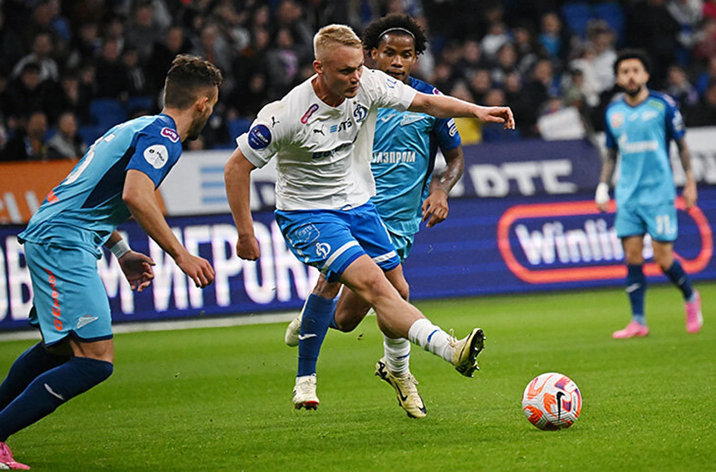Константин Тюкавин забил победный гол «Зениту» (1:0). Нападающий «Динамо» классно подстроился под непростую скидку партнера и отправил мяч в ворота.