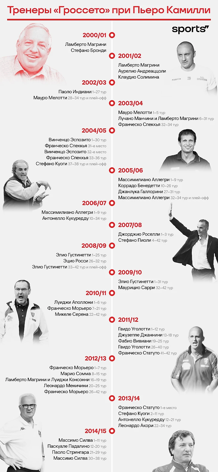 Весной 2011-го, когда бывший тренер «Гроссето» Макс Аллегри шел к чемпионству с «Миланом», сменивший Морьеро Микеле Серена вытаскивал клуб Камилли из опасной зоны.