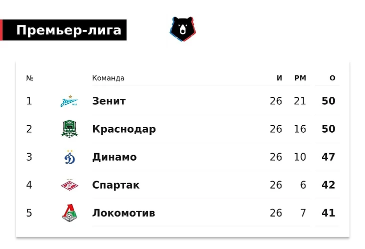 ● У лидера по-прежнему 50 очков после 26 туров. Это второй худший результат в истории чемпионатов России: меньше набирали лишь в 2007-м (49).