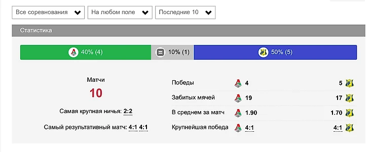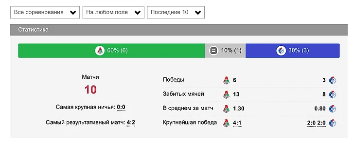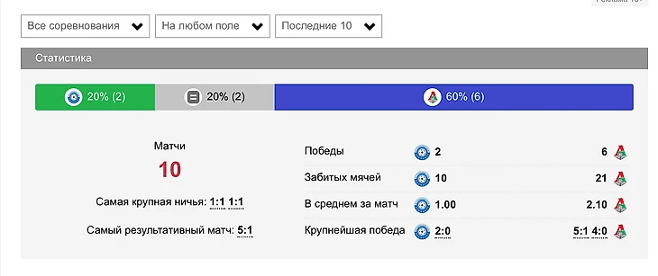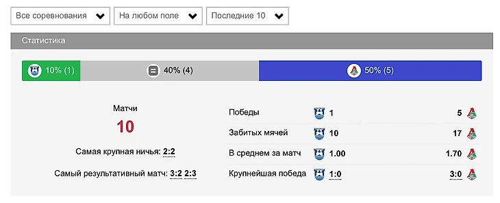 Впереди у Локо еще 4 матча в сезоне, давайте разберем, какие были результаты с командами в первом круге. В следующем туре матч с Ростовым, Локомотив играл в чемпионате в октябре 2023 и проиграл матч со счетом 1:0. Аналитика soccer365 также показывает, что по последним 10 матчам с Ростовым Локо не выглядит фаворитом.
