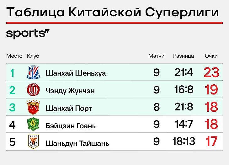 ● «Шанхай» одержал уже семь побед, пять из них – сухие. Потеряли очки лишь дважды. А еще это самая длинная беспроигрышная серия в истории «Шанхай Шеньхуа» – уже девять матчей!
