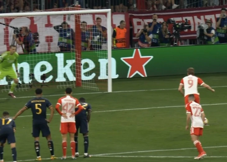 Беллингем пытался создать трудности своему партнеру по сборной. Когда Харри подошел к точке, Джуд что-то шепнул ему на ухо. Надавить на опытного Кейна у полузащитника «Мадрида» не получилось, с ударом нападающий справился отлично.