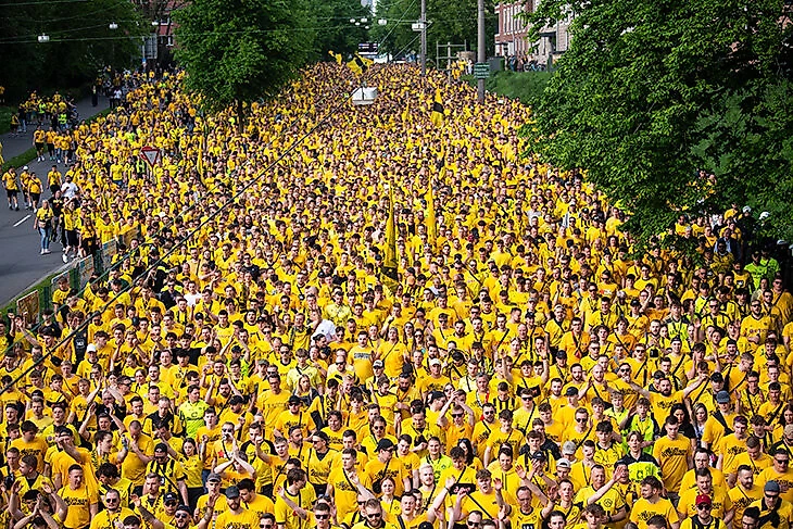 Днем улицы Дортмунда заполонили десятки или даже сотни тысяч людей в желтом.