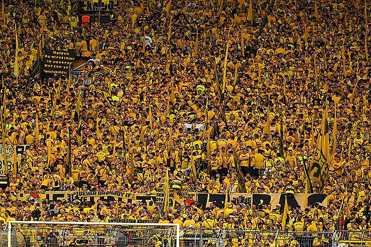 Как же они болеют на «Вестфаленштадионе» – масштабных баннеров на этот раз не заготовили, но фанаты на знаменитой «Желтой стене» запаслись флагами.