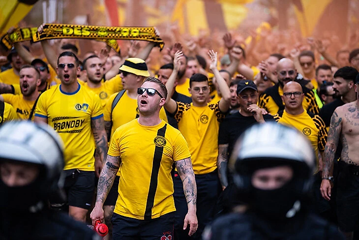 Маршем они прошли на стадион. Судя по фото, тут были фанаты не только «Боруссии» но и, например, «Брондбю».