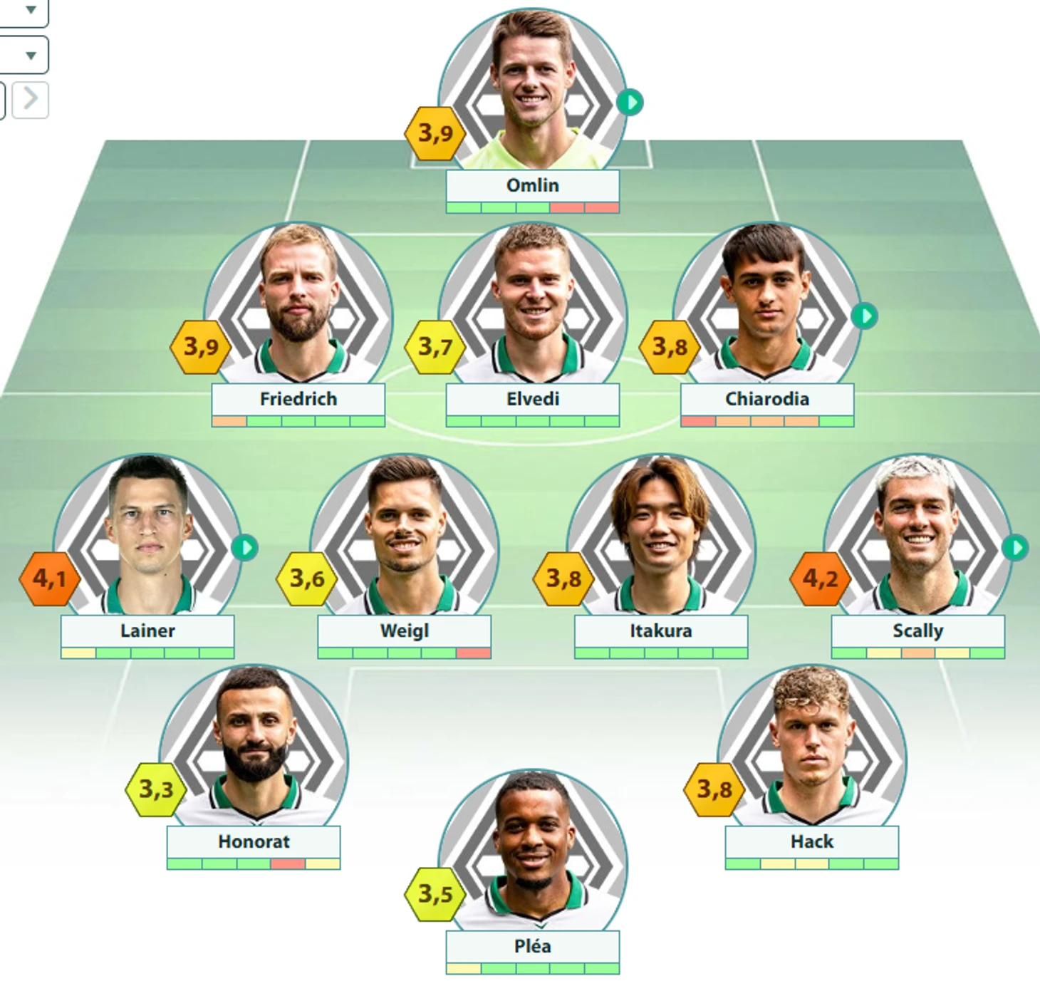 «Боруссия» Менхенгладбах: Николас – Фридрих, Эльведи, Кьяродиа – Лайнер, Вайгль, Итакура, Скалли – Онора, Плеа, Хак