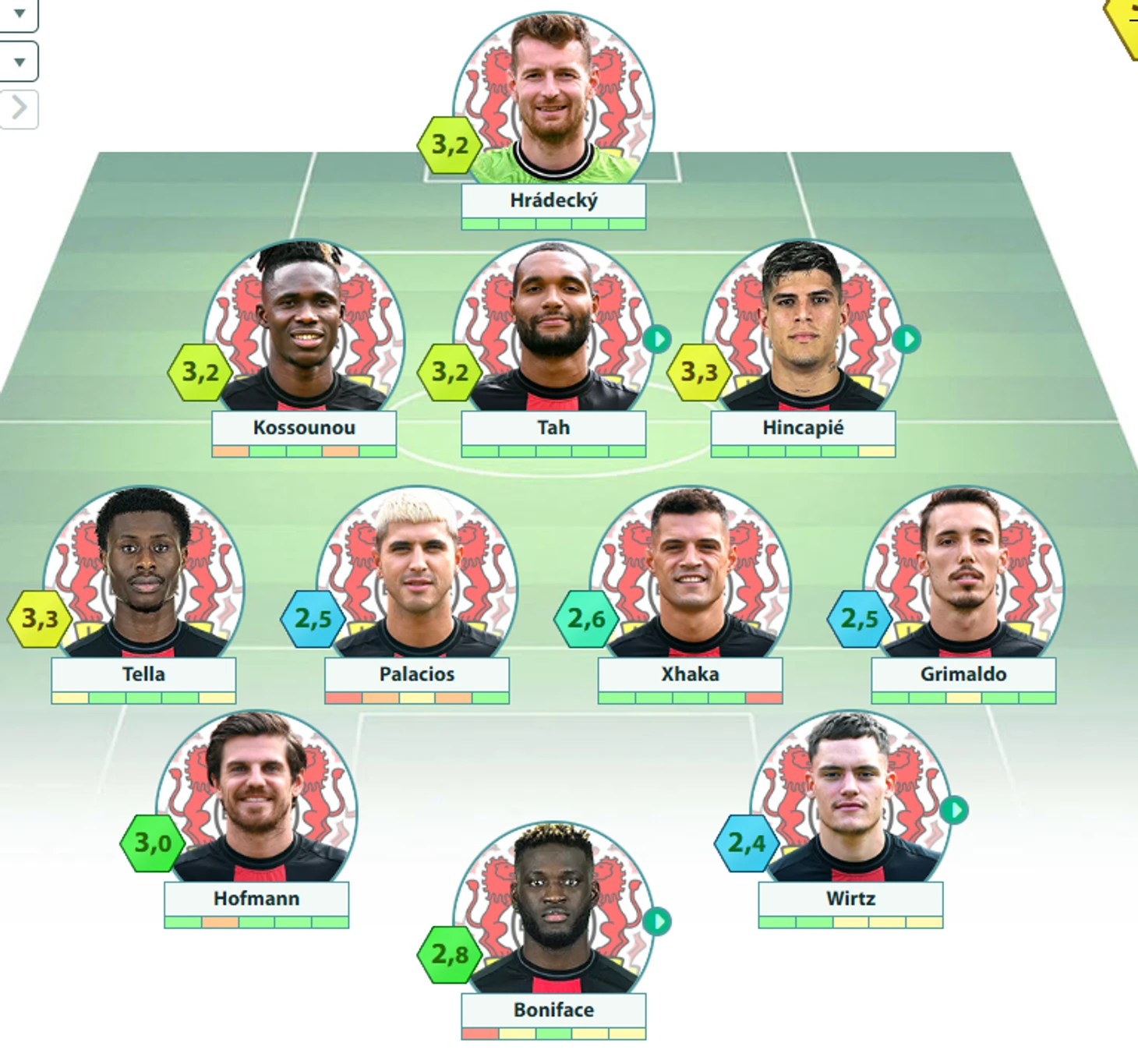 «Байер» Леверкузен: Градецки – Коссуну, Та, Инкапие – Телла, Паласиос, Джака, Гримальдо – Хофманн, Адли – Шик