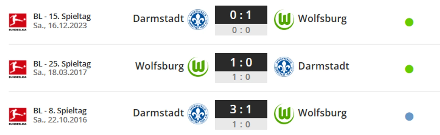 - «Вольфсбург» в этом сезоне заработал семь из девяти возможных очков в противостояниях с «Хайденхаймом» (2:0 и 1:1) и «Дармштадтом» (1:0).