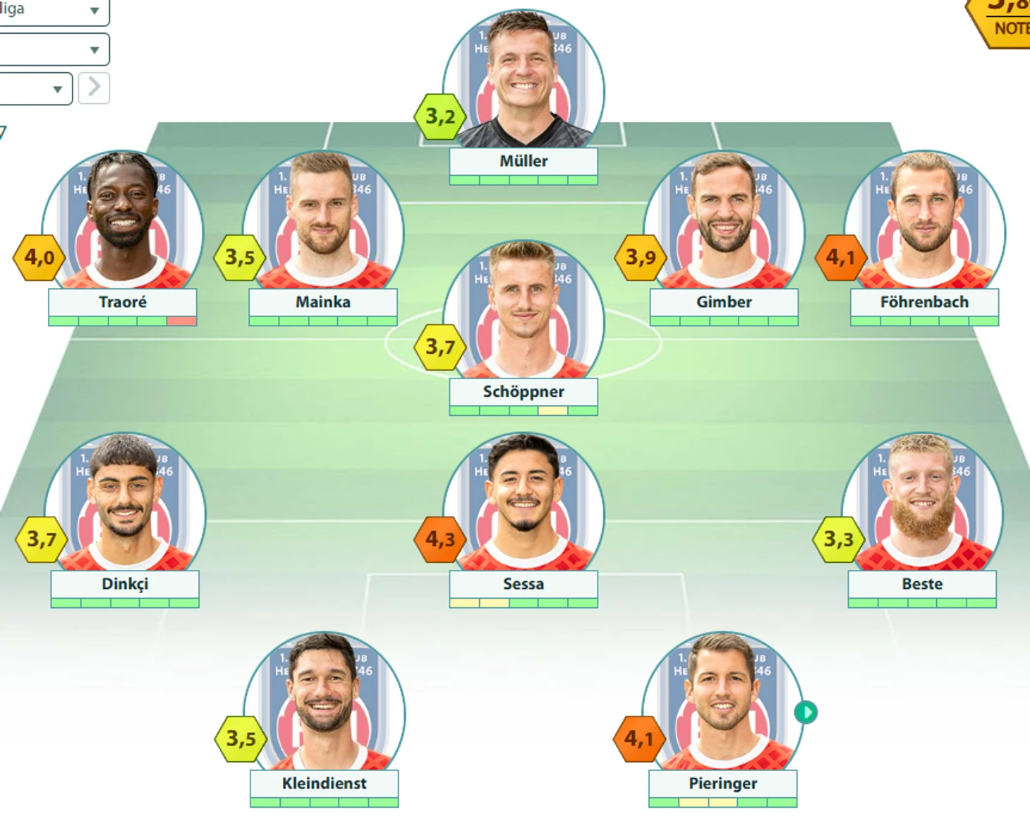 «Хайденхайм»: Мюллер – Траоре, Маинка, Гимбер, Ференбах – Зесса, Шепнер – Динкчи, Перингер, Бесте – Кляйндинст