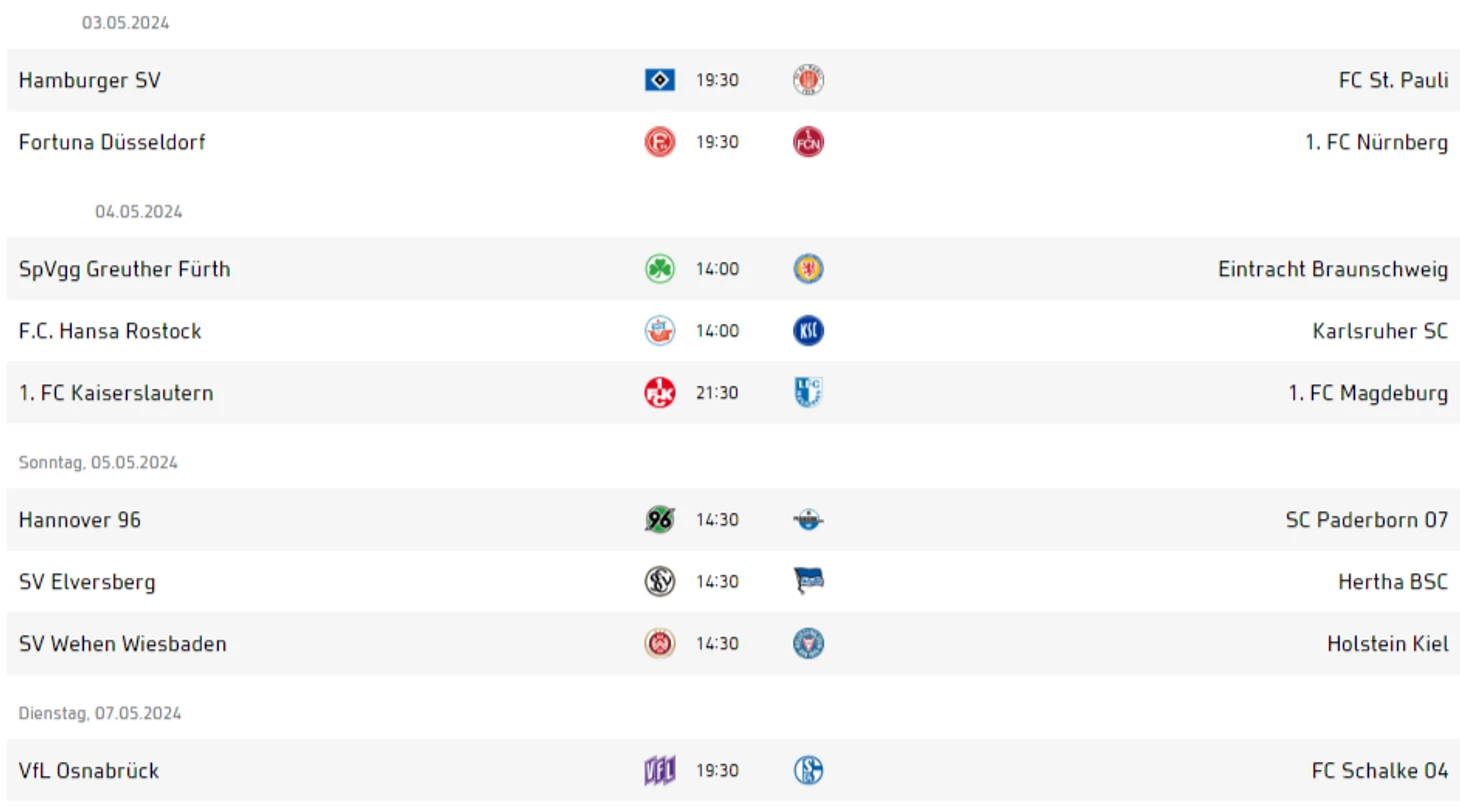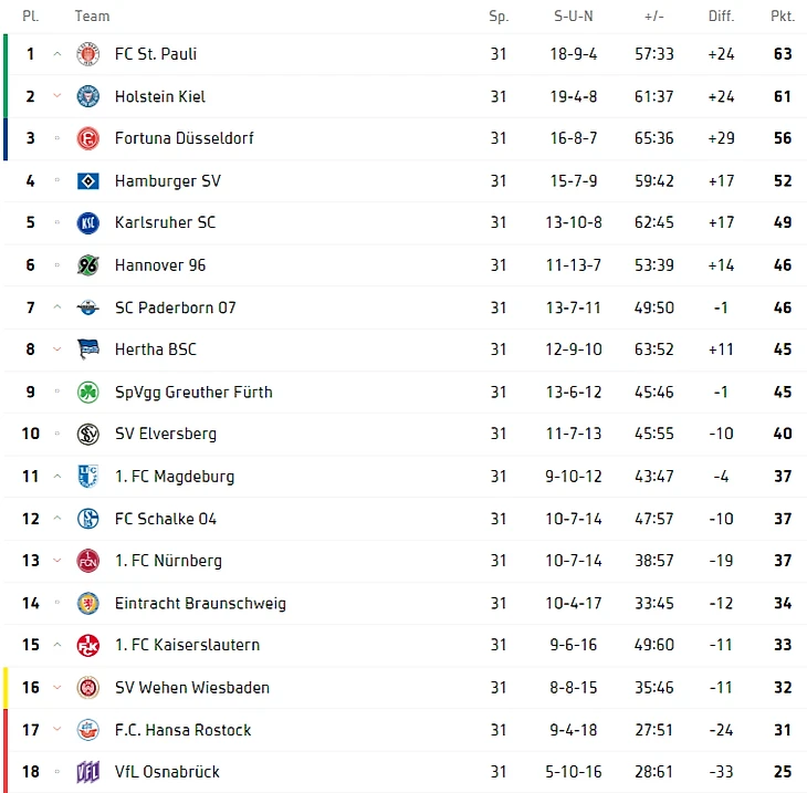 Таблица и расписание 32-го тура второй Бундеслиги (нас ждет дерби Гамбурга, в котором «Санкт-Паули» может оформить выход в первую лигу)