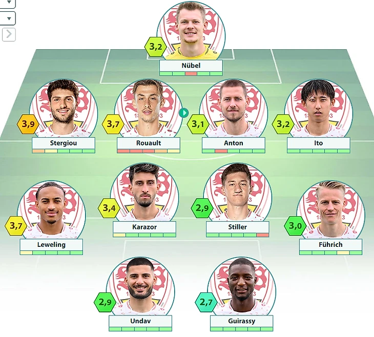 «Штуттгарт»: Нюбель – Стергиу, Руо, Антон, Ито – Левелинг, Каразор, Штиллер, Фюрих – Ундав, Гирасси