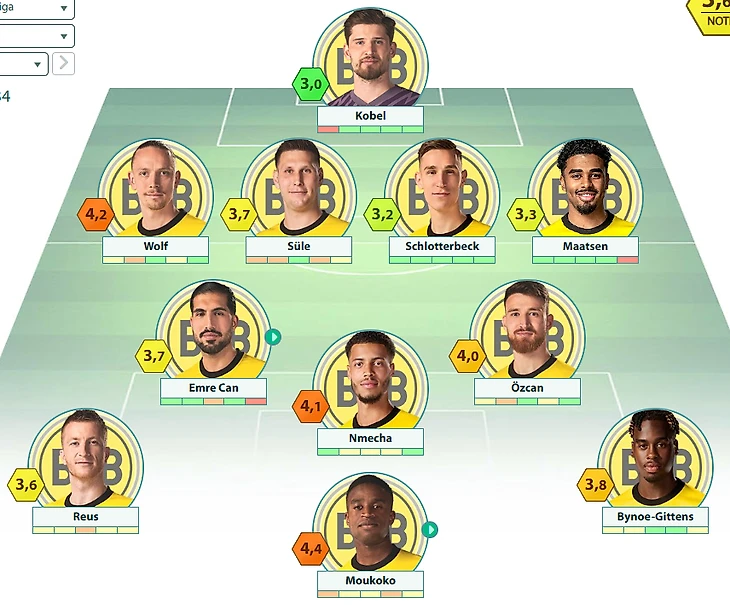 Ориентировочные составы (здесь и далее – версия Bundesliga.com – текст, версия LigaInsider.de – скрин):
