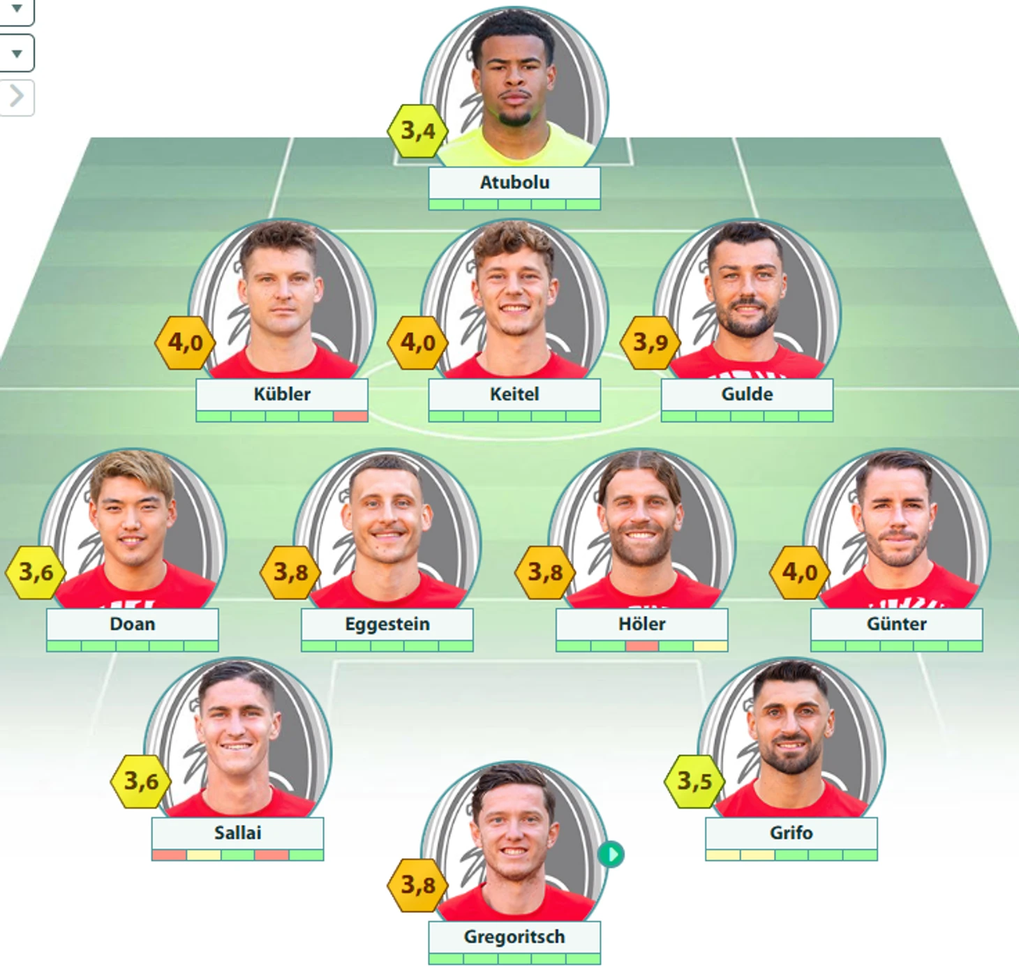«Фрайбург»: Атуболу – Кюблер, Кайтель, Гульде – Доан, Шаллаи, Эггештайн, Гюнтер – Хелер, Грифо – Грегорич