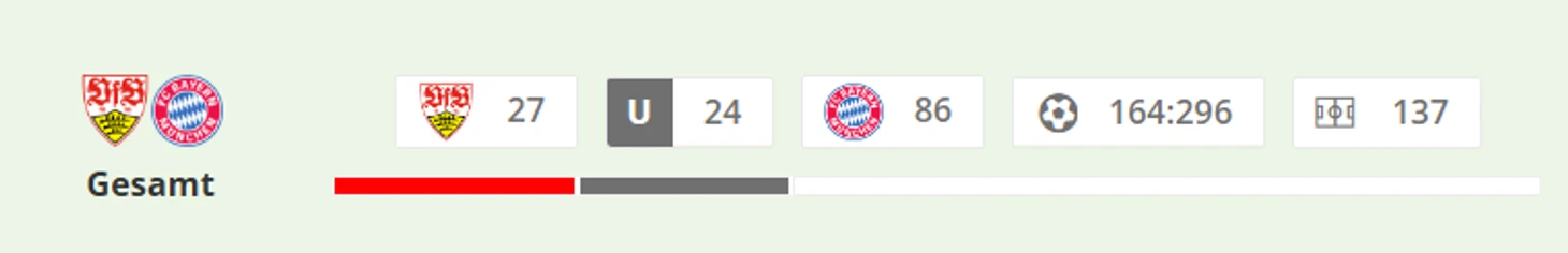 - «Бавария» одержала 69 побед над «Штутгартом» в Бундеслиге ― в истории турнира ни одна команда не обыгрывала другую так часто.