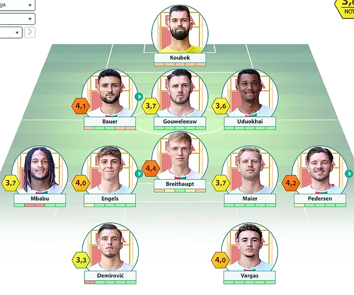 «Аугсбург»: Дамен – Мбабу, Гауэлеу, Удуохай, Педерсен – Энгельс, Брайтхаупт, Майер – Варгас – Титц, Демирович