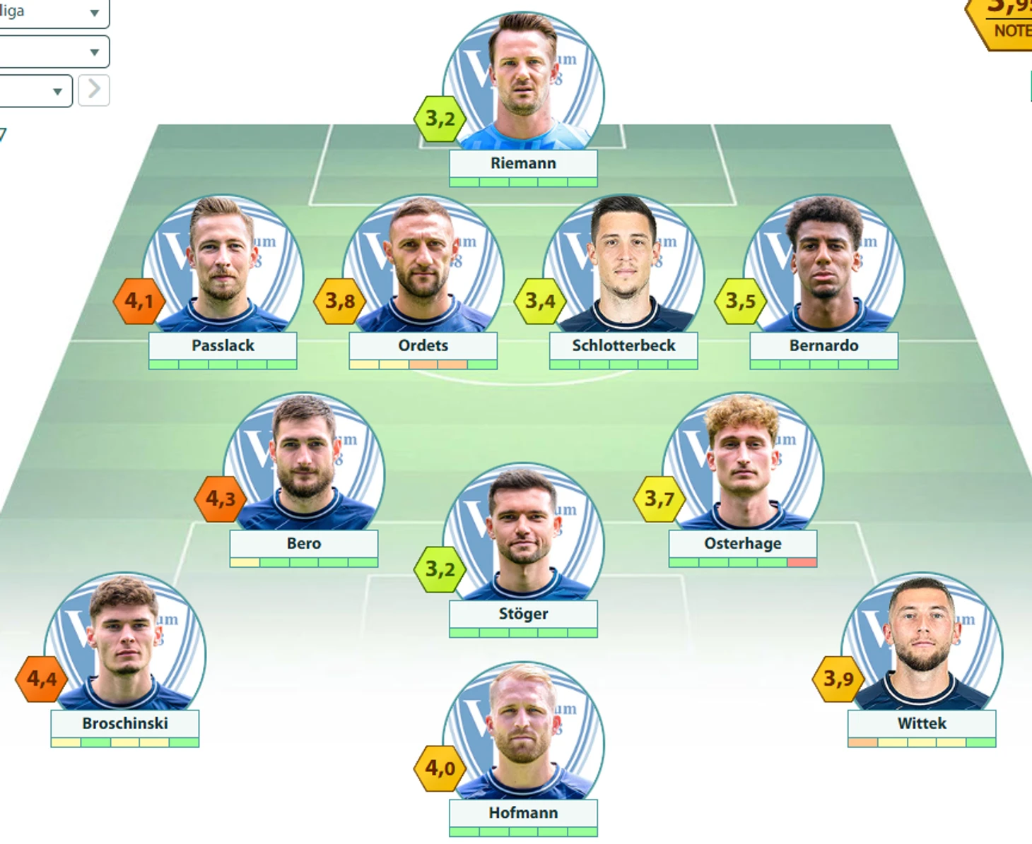 «Бохум»: Риманн – Пасслак, Ордец, Шлоттербек, Бернардо – Беро, Остерхаге, Штегер, Виттек – Асано, Хофманн