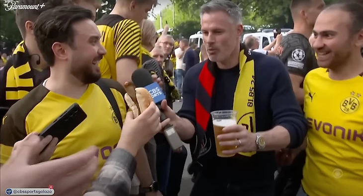 CBS Sports выдал новое шоу на Лиге чемпионов. На этот раз Джейми Каррагер не сидел в студии, а отправился в гущу событий, чтобы на себе ощутить мощь и красоту дортмундской «Желтой стены». Получилось ооочень весело!