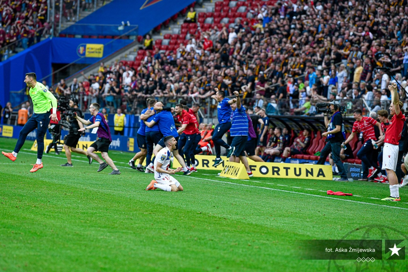 О нервозности «Погони» уже не шло и речи, «портовцы» ждали финального свистка, пытаясь успокоить игру. Ждать пришлось еще минимум семь минут, именно столько к основному времени матча добавил главный арбитр встречи. Игра чуть затянулась, на 99-ой минуте вся скамейка «Погони» уже была на ногах и готова была праздновать первый в 76-летней истории клуба трофей, когда краковчане получили последний шанс сравнять счет и перевести матч в дополнительные полчаса.