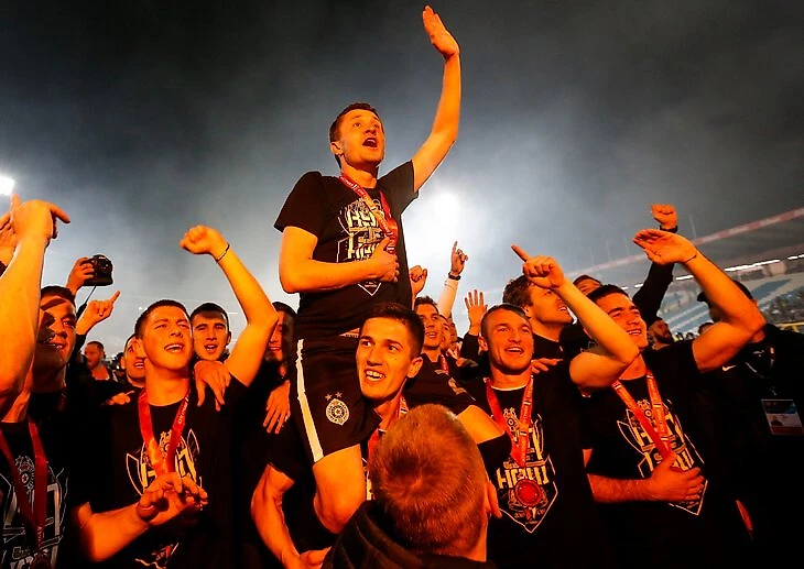 Конечно, в родной «Партизан». Там Илич играл с 2010-го по 2019-го, пока не завершил карьеру – стал местной легендой и главным любимцем фанатов. Страсть взаимна – вот так серб (в белой футболке) слушает гимн родного клуба.