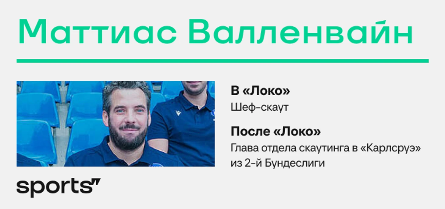 Маттиас Валленвайн до «Локо» работал в леверкузенском «Байере», где отвечал за Южную Америку и Великобританию (Паласиос и Фримпонг – в том числе его заслуга). Неудивительно, что после отъезда из Москвы Валленвайн быстро нашел работу в Германии: в январе 2023-го пришел в скаутинговый отдел дюссельдорфской «Фортуны». Спустя всего девять месяцев Валленвайн возглавил отдел скаутинга конкурентов из «Карлсруэ».