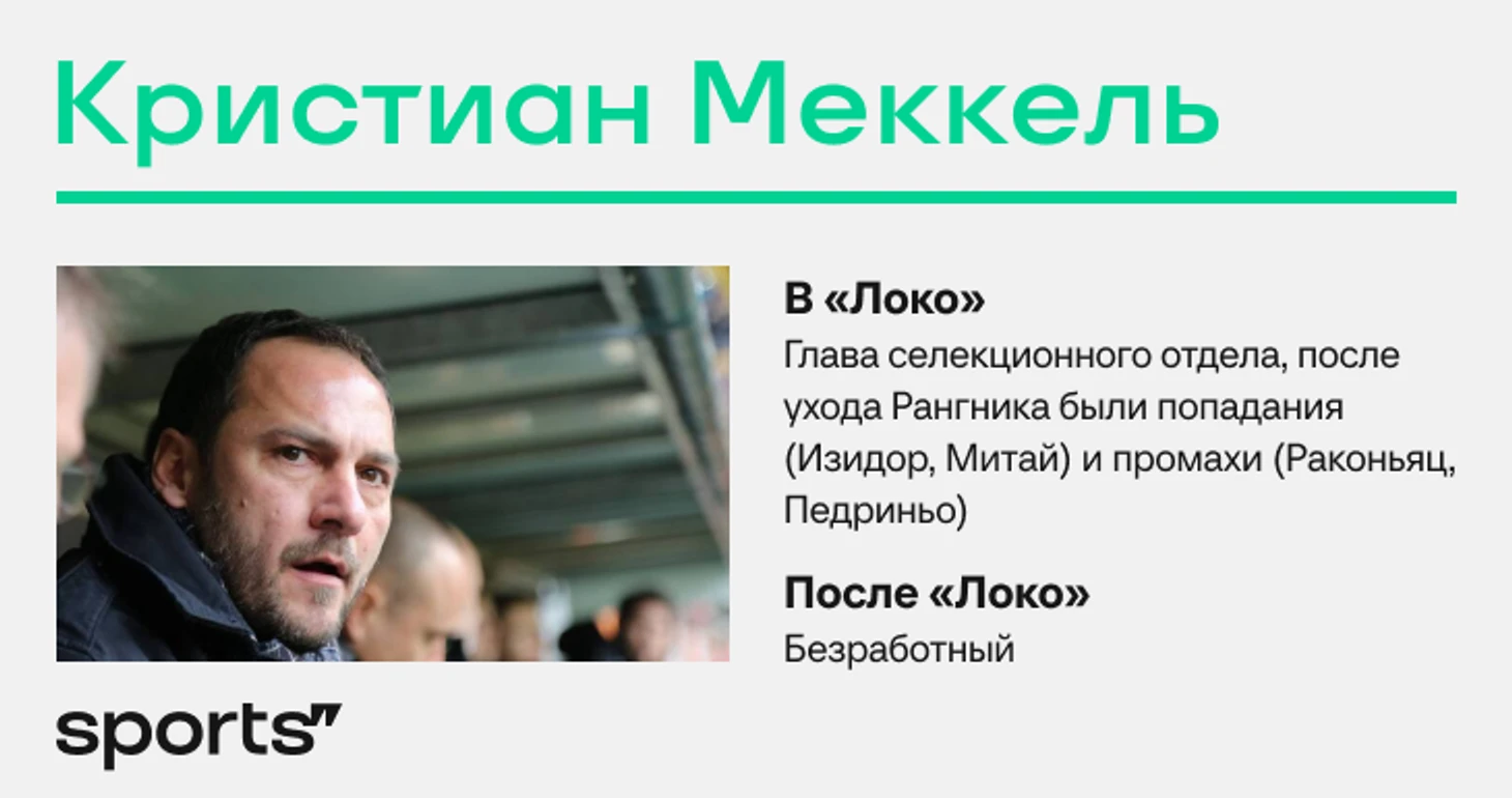 Кристиан Меккель – глава селекционного отдела «Локо» Рангника уже полтора года без работы. После увольнения в октябре 2022-го о Меккеле нет никакой информации в открытых источниках. В профиле LinkedIn он обозначен как бывший сотрудник «Локо» – новых записей в резюме нет.