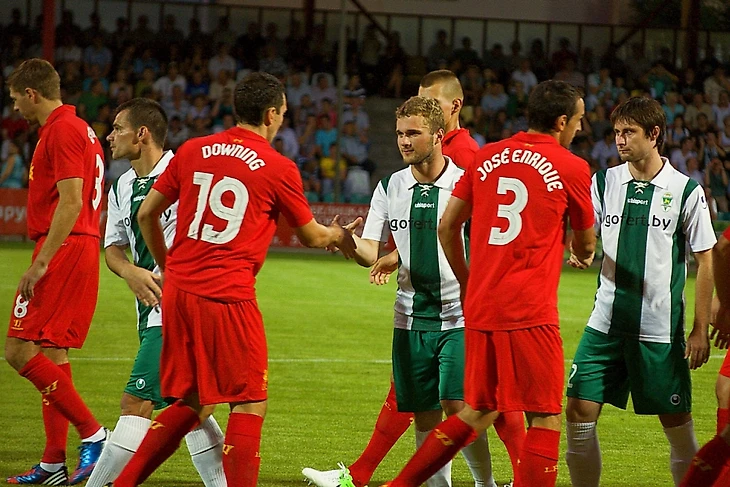 В квалификации Лиги Европы сезона 2012/2013 в третьем раунде Гомель попал на «Ливерпуль». 2 августа английский коллектив приехал на «Центральный». Это был еще нетоповый Ливерпуль, который мы сейчас знаем, тогда он переживал нелучшие времена, но тем не менее, в той банде Роджерса приехали и вышли на поле Джеррард, Шкртел, Каррагер, Борини и еще юный Рахим Стерлинг. Гомель, при полном аншлаге, дал настоящий бой английскому гранду и уступил минимально 0:1. Тот вечер надолго остался в памяти гомельских поклонников футбола.
