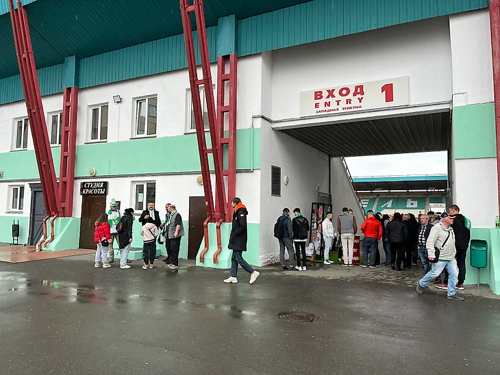 Билеты на игру стоят 8 рублей (2,5$) - на все трибуны, кроме двух центральных, туда уже придется отдать на 2 рубля больше. Купить можно в день игры в кассах стадиона или через приложение «Оплати». С парковкой возле стадиона возникли проблемы, пришлось парковаться во дворах за стадионом.