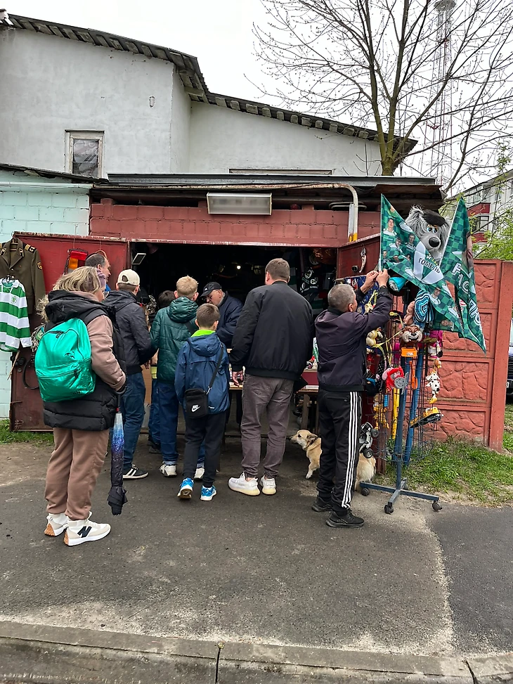 Перед входом на стадион удивил местный импровизированный фан-шоп. Это обычный гараж, в котором человек устроил точку продажи. Продавалась как и атрибутика клуба, так и всякие различные предметы, которые можно увидеть на барахолке.