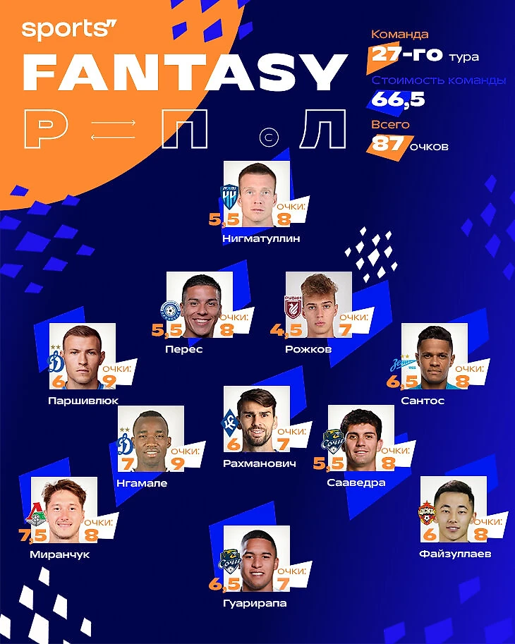 Сборная 27-го тура Мир РПЛ в фэнтези-турнире.