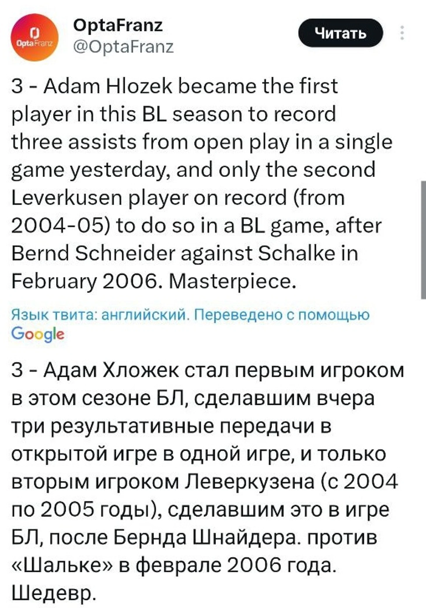 А напоследок отметились свежие Фримпонг и Бонифасе. Гложек собрал хет-трик из ассистов после ещё одной роскошной контры и передачи на Фримпонга. А Джереми затем заработал ещё один пенальти, который позволил забить Бонифасе. 1:5. 49-й матч «Байера» без поражений. На очереди «Рома» и возможность выйти во второй финал за сезон.