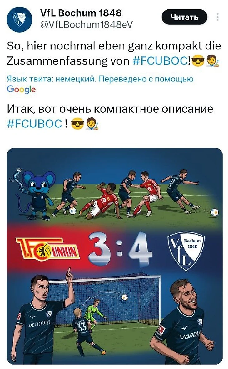 Только «Бохум» мог в битве с прямым конкурентов за два тура до финиша устроить не футбольный матч, а настоящую рубку. С семью забитыми голами и сразу несколькими сюжетными поворотами. Из плюсов – после сегодняшнего успеха мы с большой долей вероятности сможем ещё как минимум сезон следить за этой отчаянной и авантюрной командой.