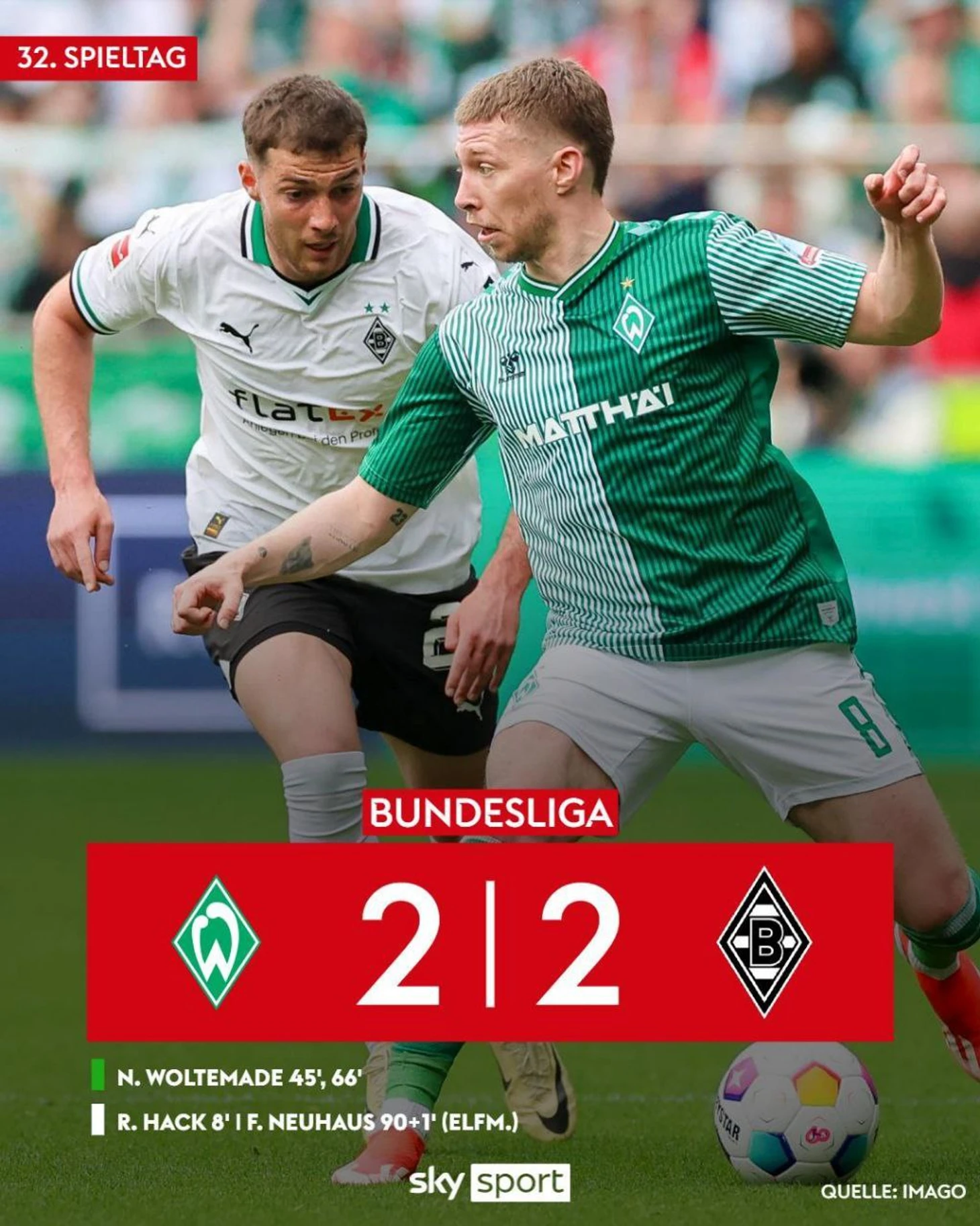 «Жеребцы» сумели спасти ничью уже в добавленное время благодаря пенальти. Менхенгладбахцы пока остаются в зоне риска – при определенном стечении обстоятельств они могут попасть в зону плей-офф.