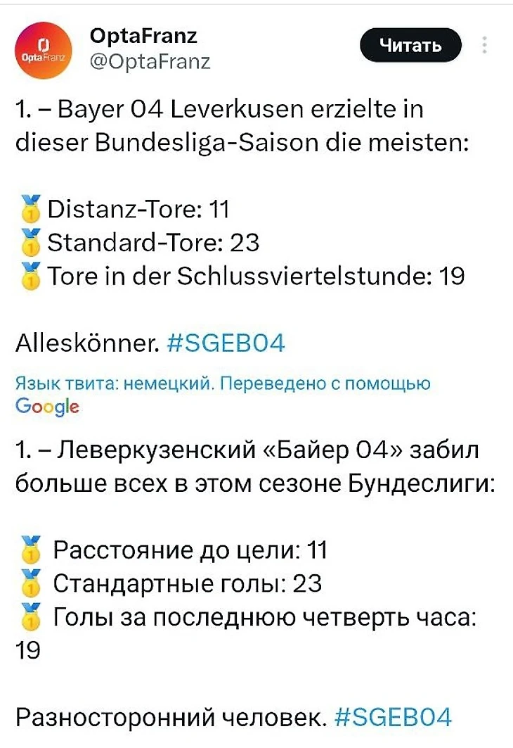 - В текущем сезоне «фармацевты» забили 82 гола в чемпионате Германии, что соответствует клубному рекорду, установленному в сезоне 2021/22.