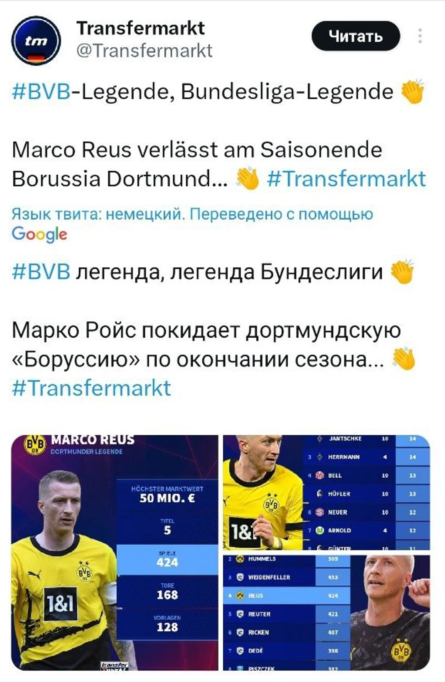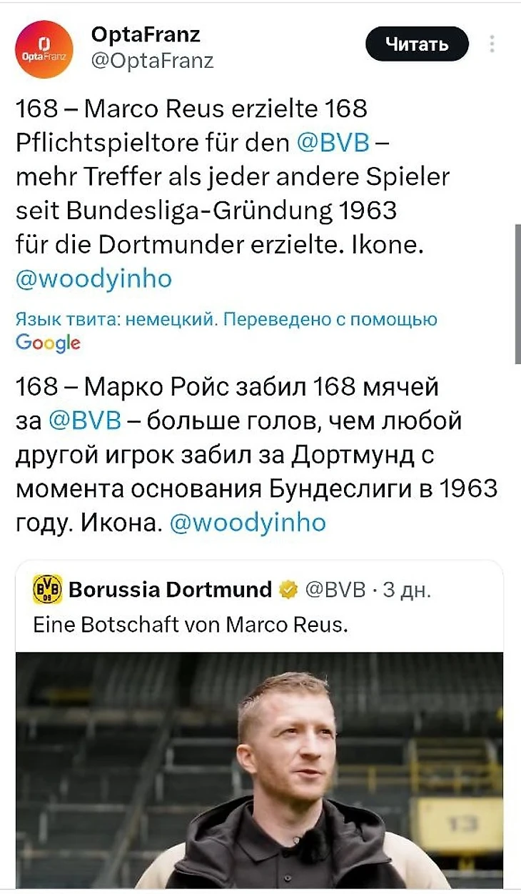 - Марко Ройс забил 169 голов за дортмундскую «Боруссию» во всех турнирах ― больше, чем любому другому игроку удавалось забить за этот клуб с момента основания Бундеслиги в 1963 году.