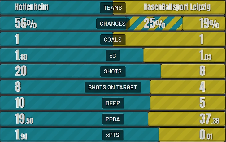 - «РБ» прервал свою серию из побед над «Хоффенхаймом». До этого «быки» обыгрывали соперника в пяти матчах подряд (четыре в Бундеслиге, одну в Кубке).