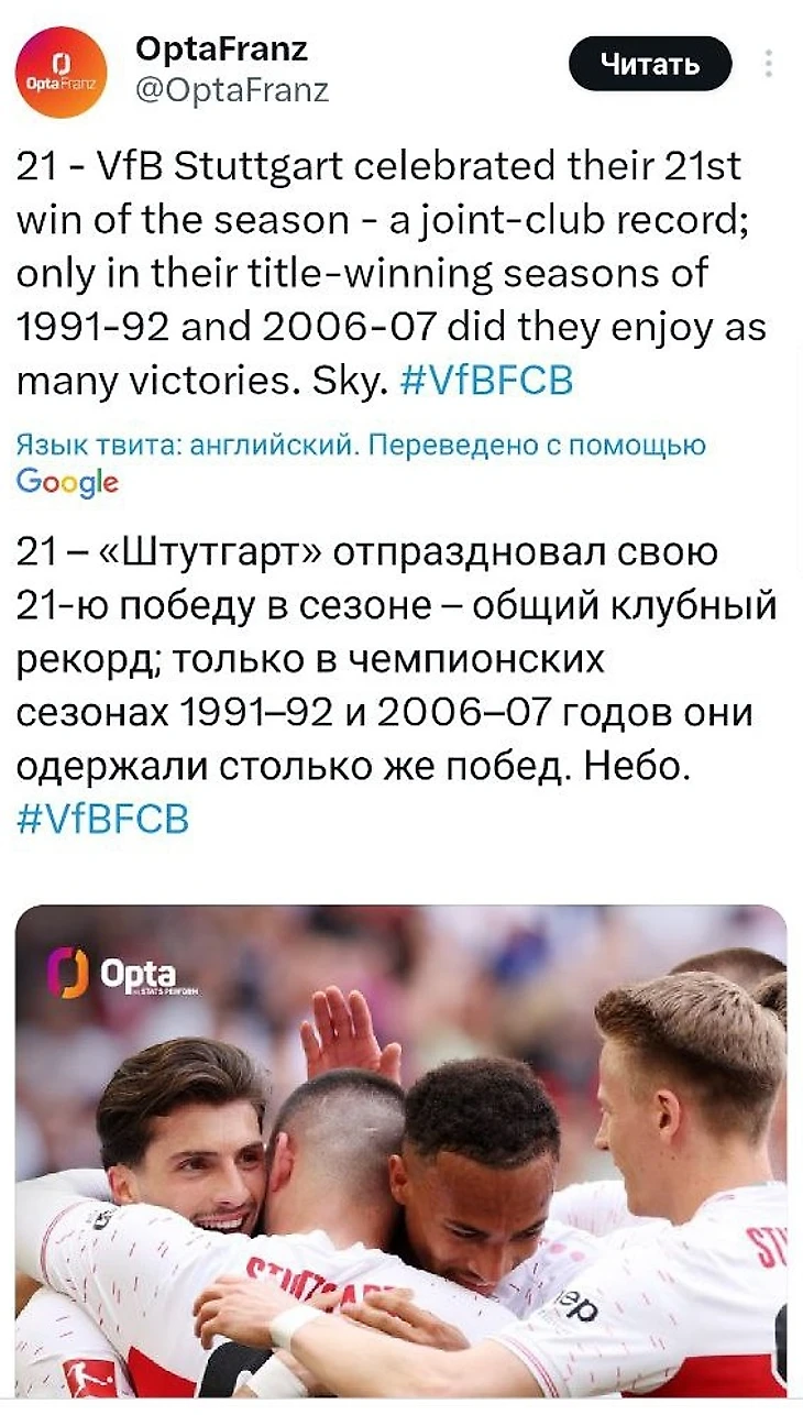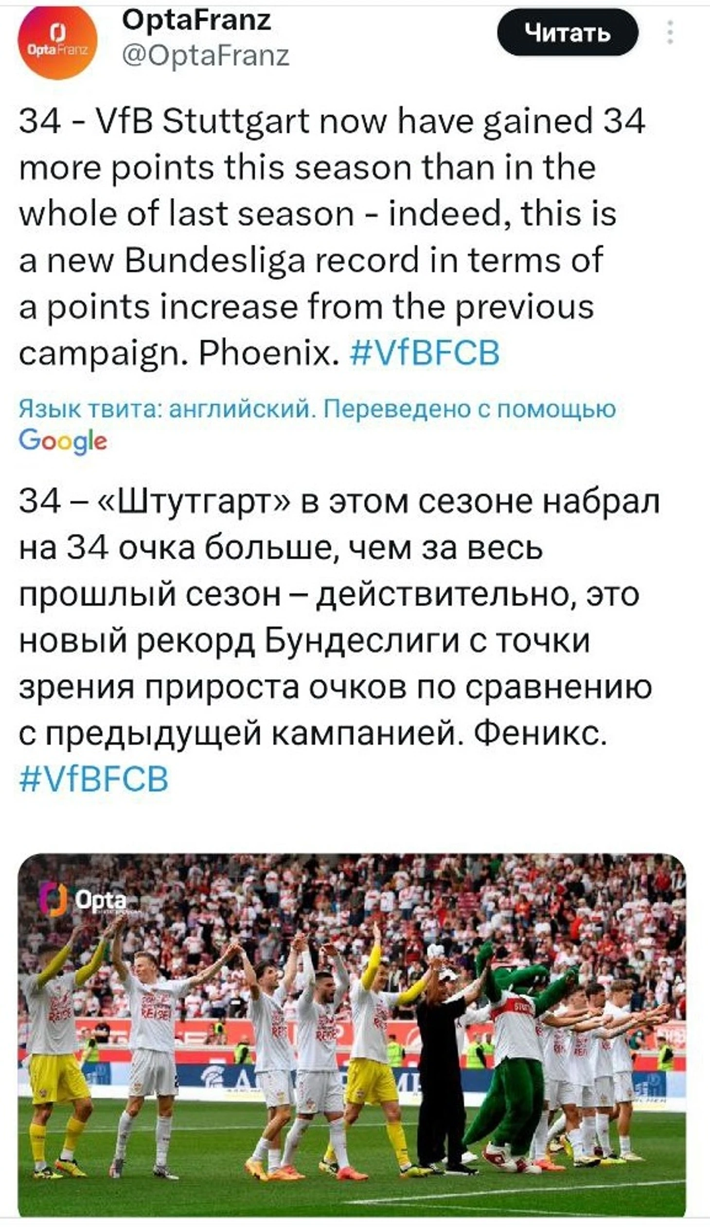 - В этом сезоне «Штутгарт» уже набрал на 34 очка больше, чем за всю прошлую кампанию. Это рекорд турнира по разнице набранных очков одной командой за два сезона.