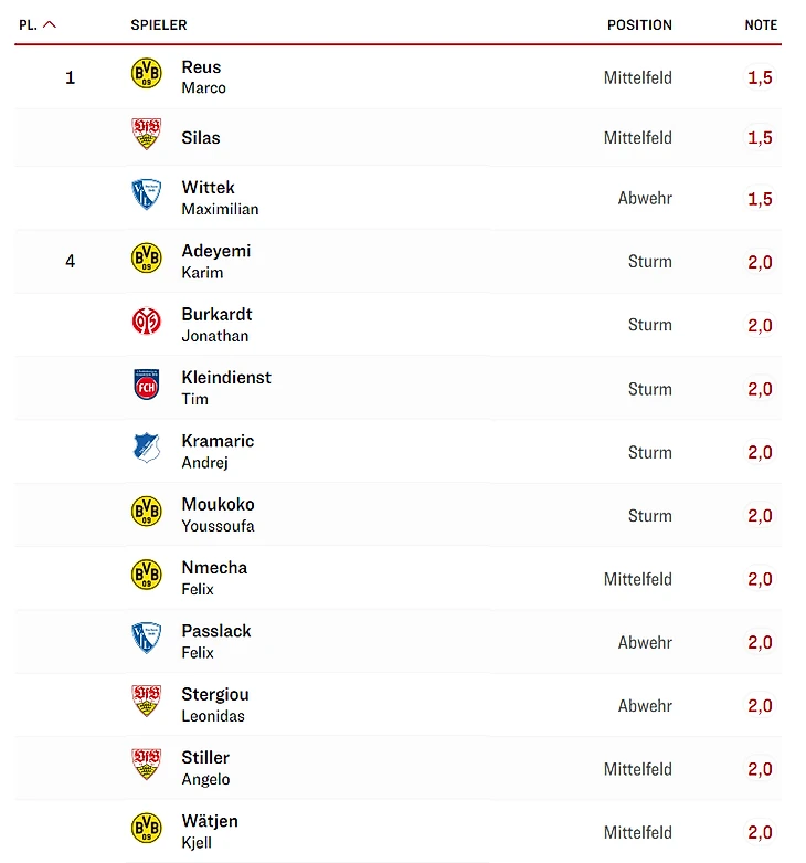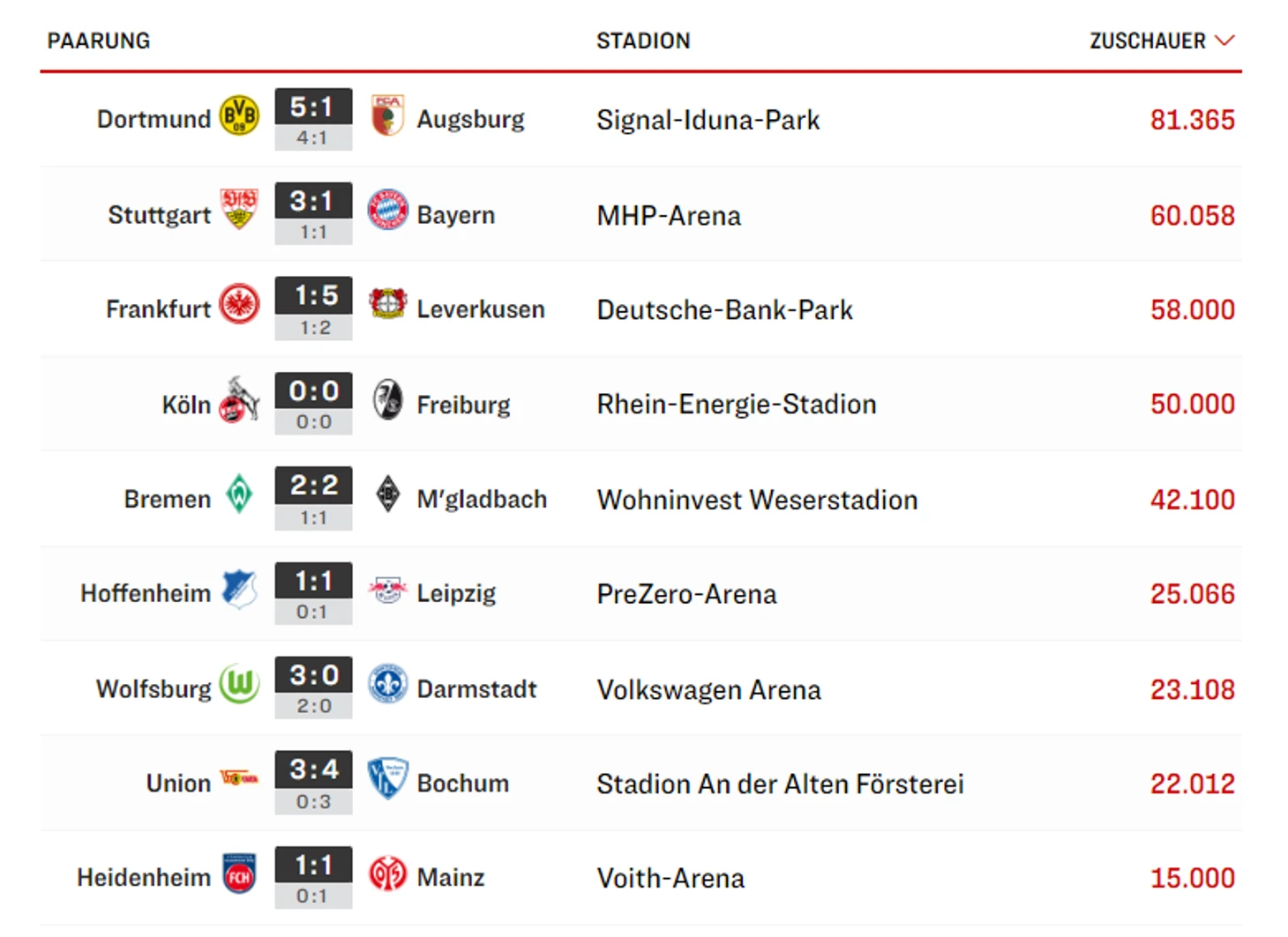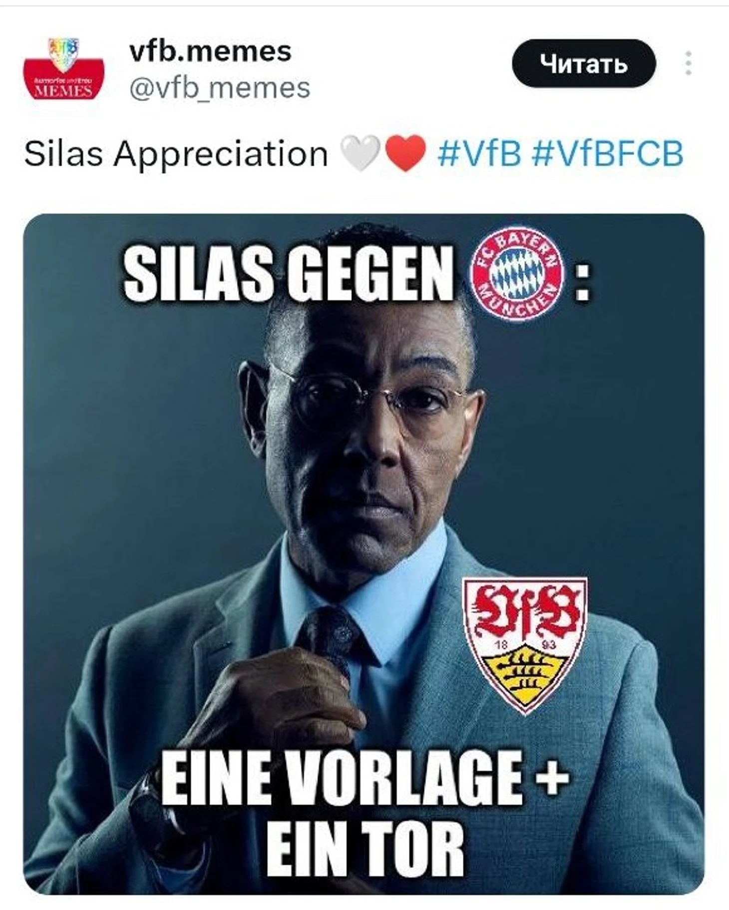 В последние 20 минут Себастиан Хёнесс блеснул тройной заменой, которая принесла первую домашнюю победу над «Баварией» за 14 лет. Дауд разогнал обе финальные результативные атаки предголевыми передачами, также забили Чжон Ву Ен и Силас. 3:1. «Швабы» на два очка отстают от «Баварии», перед которой в лучшем свете представал их возможный будущий тренер.
