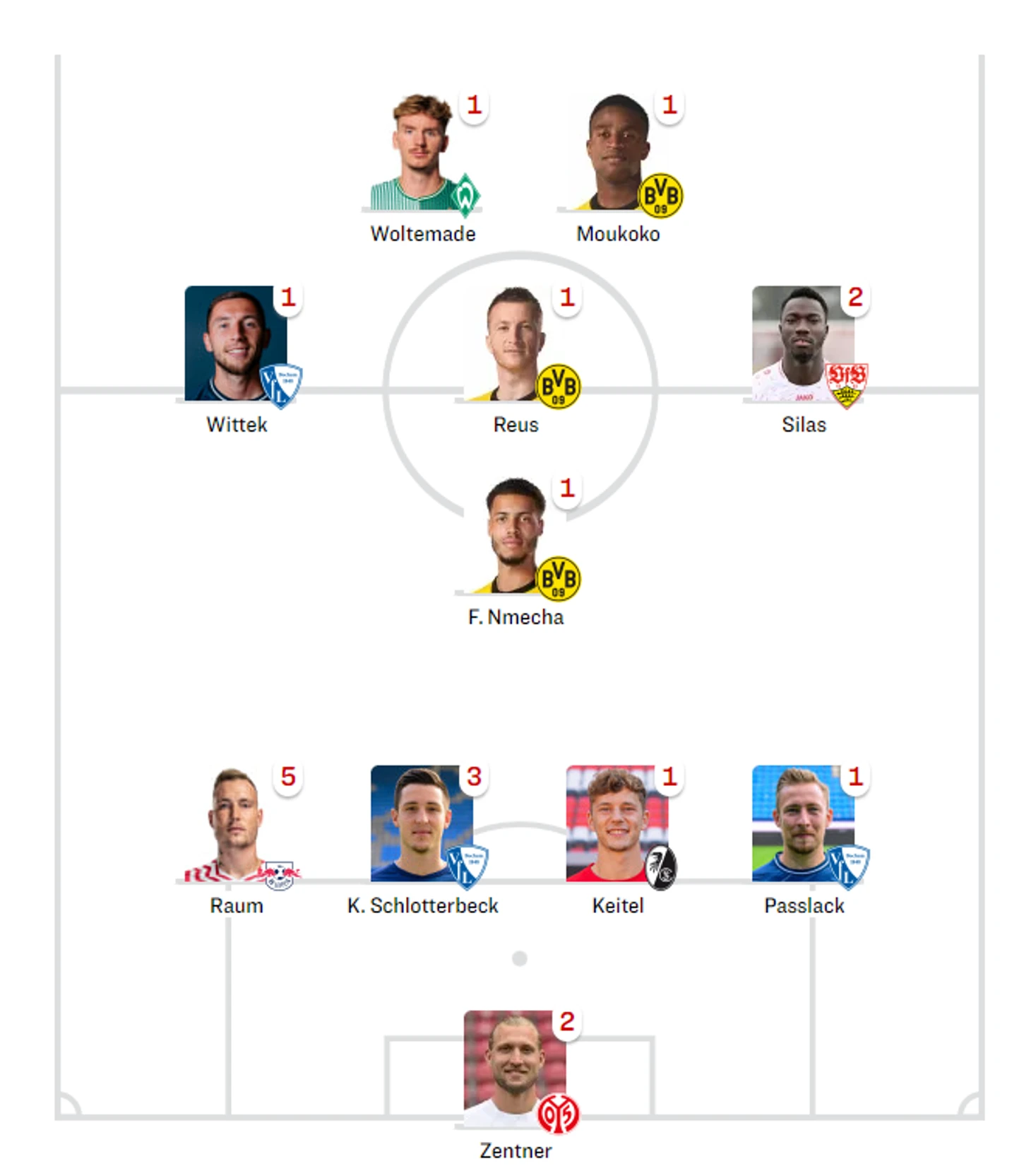 - Марко Ройс в возрасте 34 года и 339 дней стал вторым самым возрастным игроком, которому удалось набрать три очка по системе гол+пас в одном матче Бундеслиги. Первое место занимает Франк Рибери, которому это достижение покорилось в 36 лет и 336 дней.