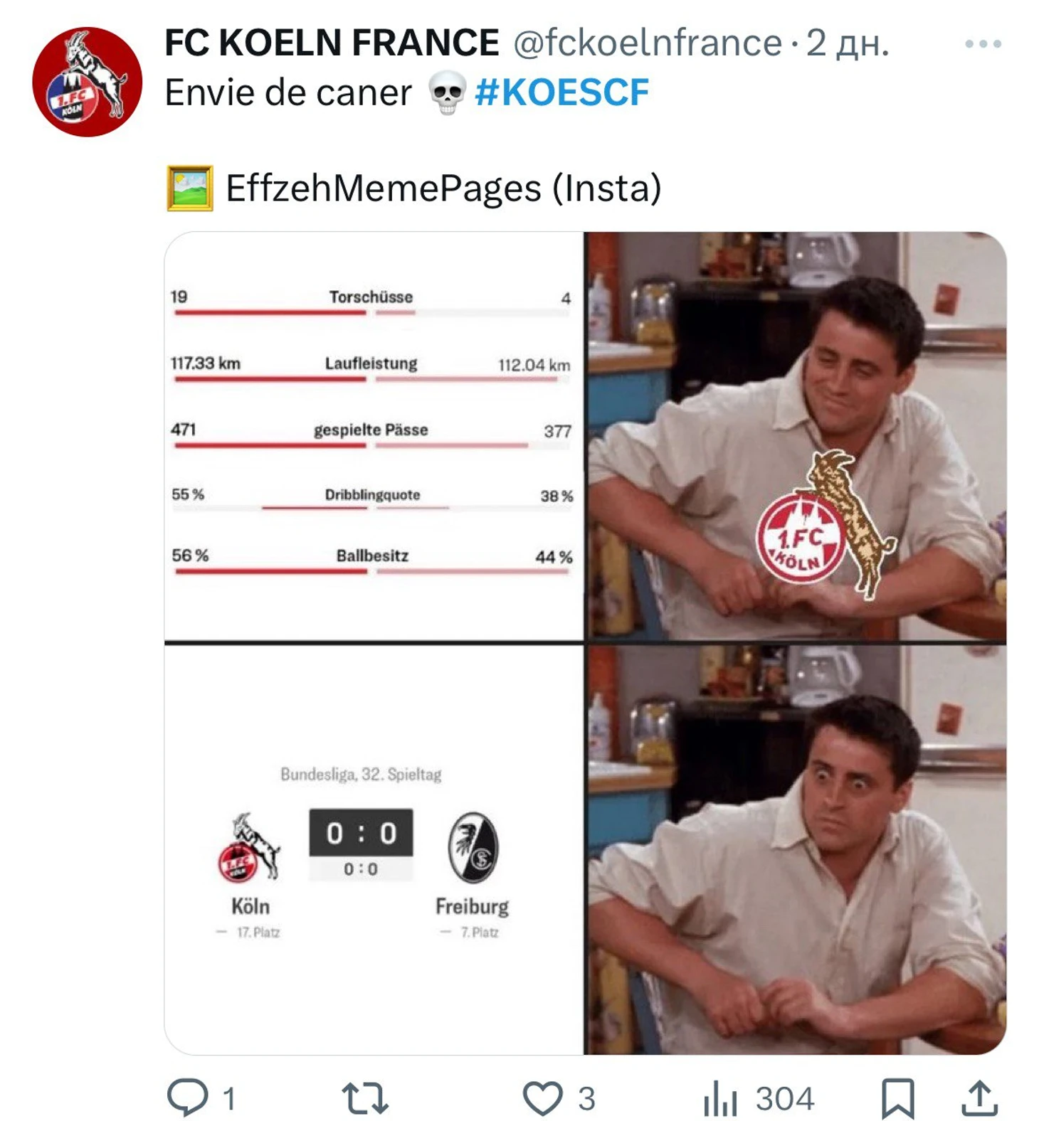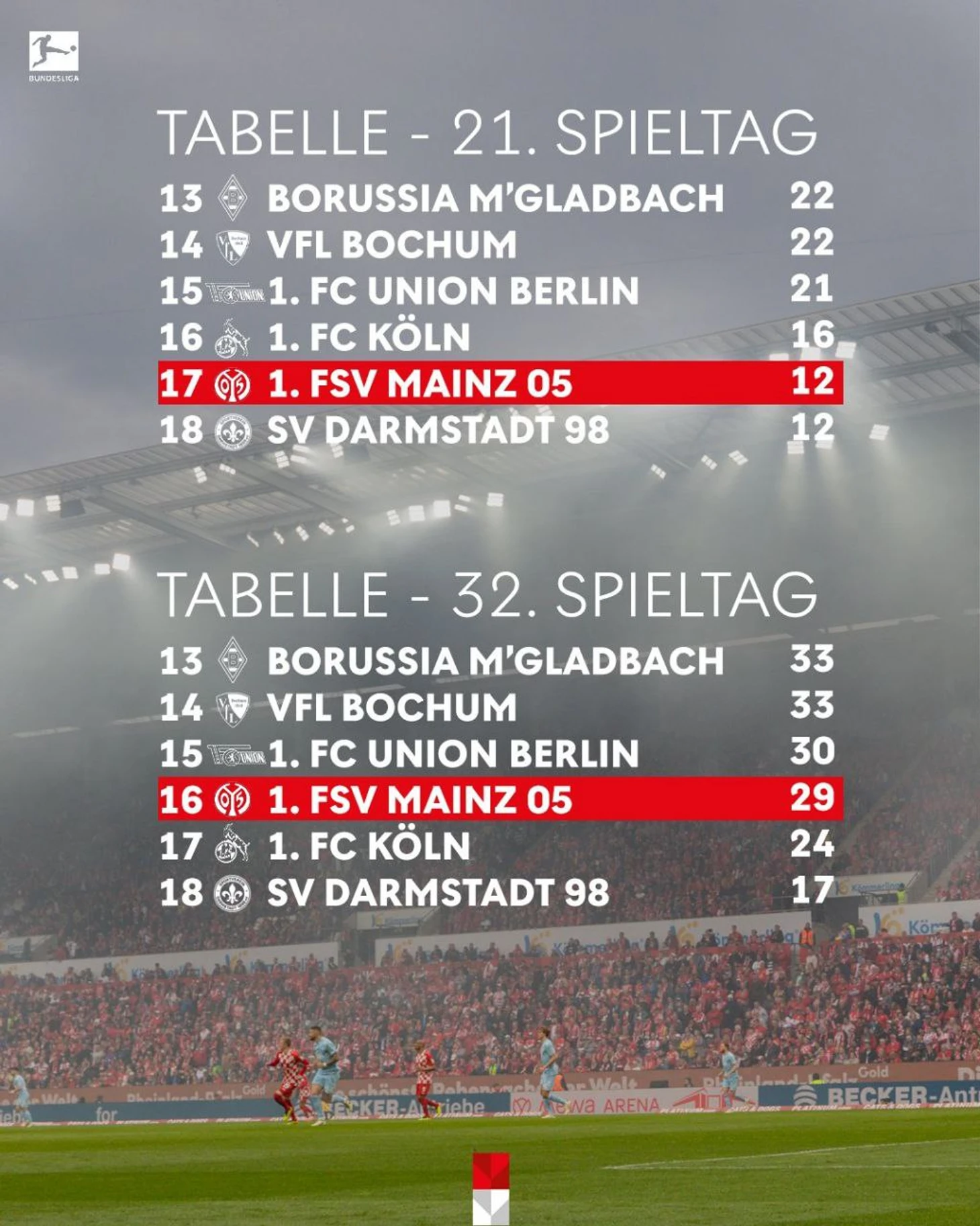 Благодаря такому результату, «карнавальщики» продлили свою серию без поражений до семи матчей. Кроме того, они с 29 очками отстают на пункт от «Униона», который уступил сегодня «Бохуму» и опустился на 15-е место.
