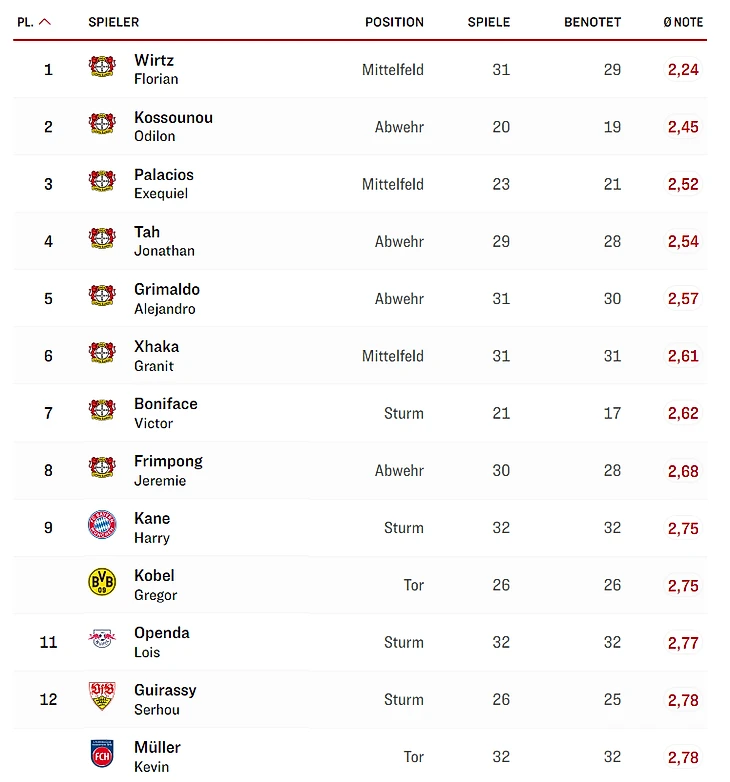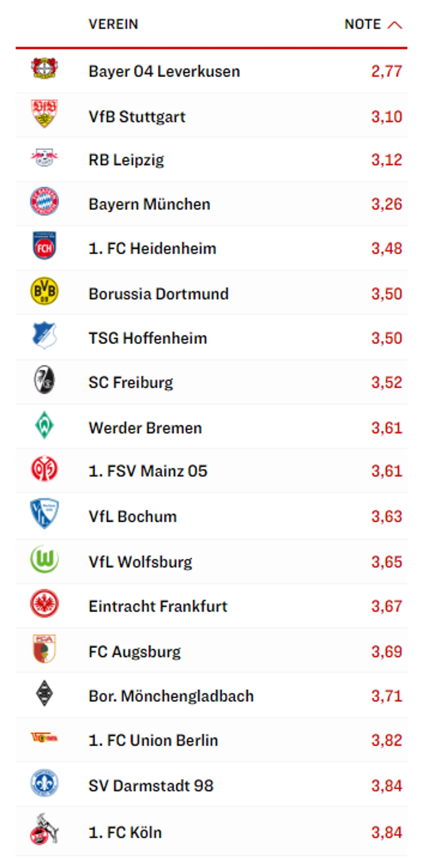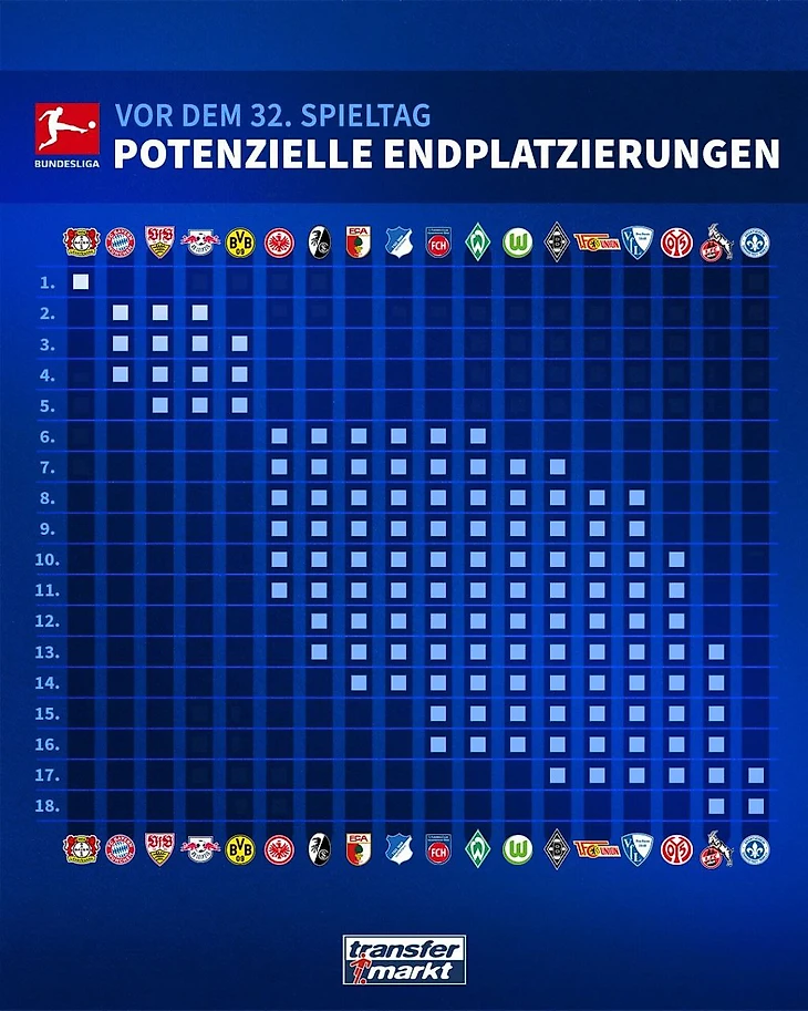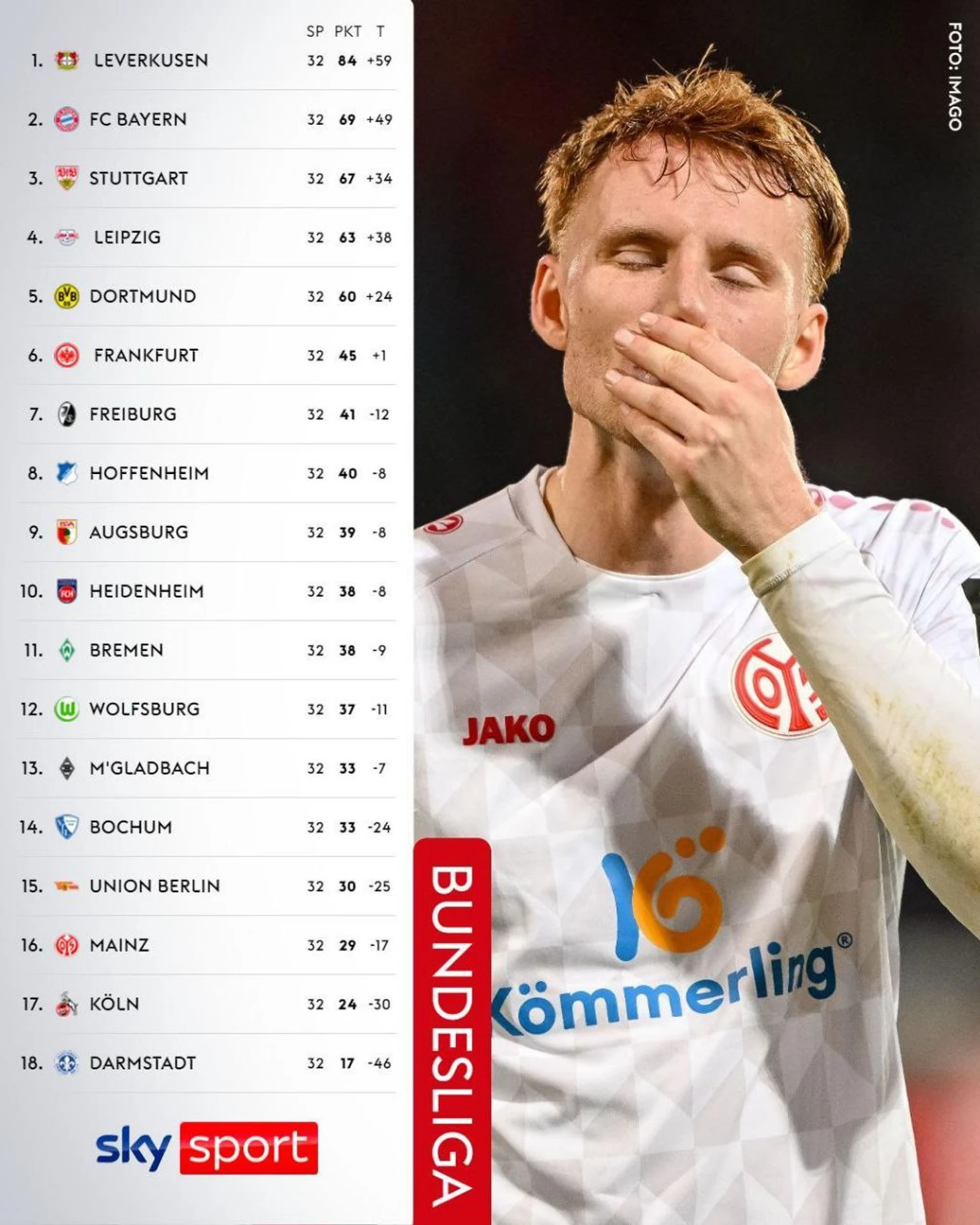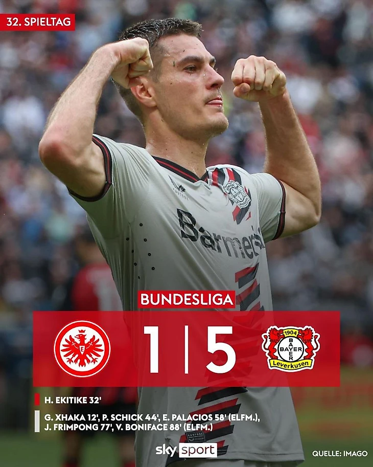 - «Байер» ― первая команда в истории Бундеслиги, которая не проиграла в 32-х матчах сезона.