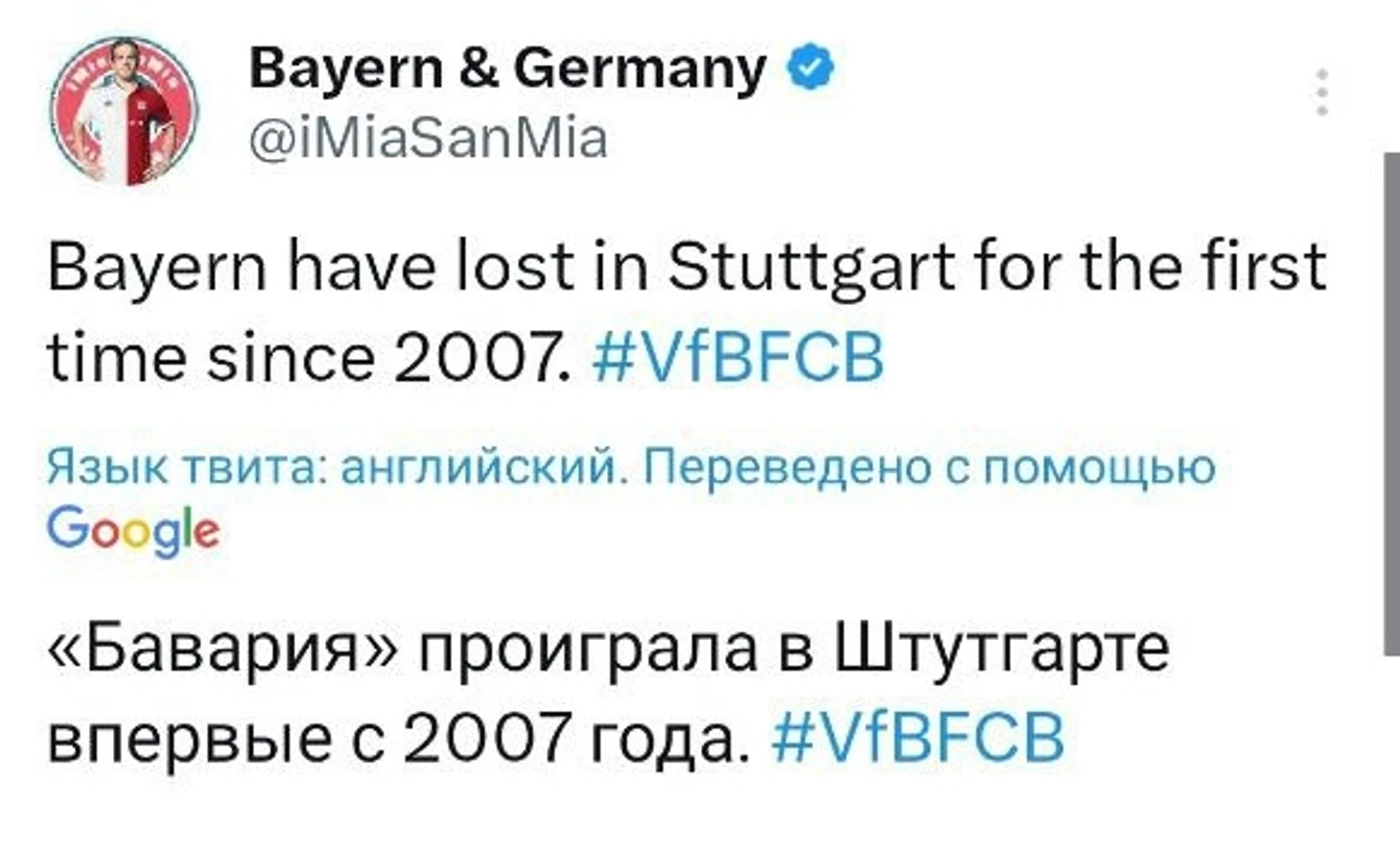 - Поражение завершило 11-матчевую победную серию «Баварии» в Штутгарте.