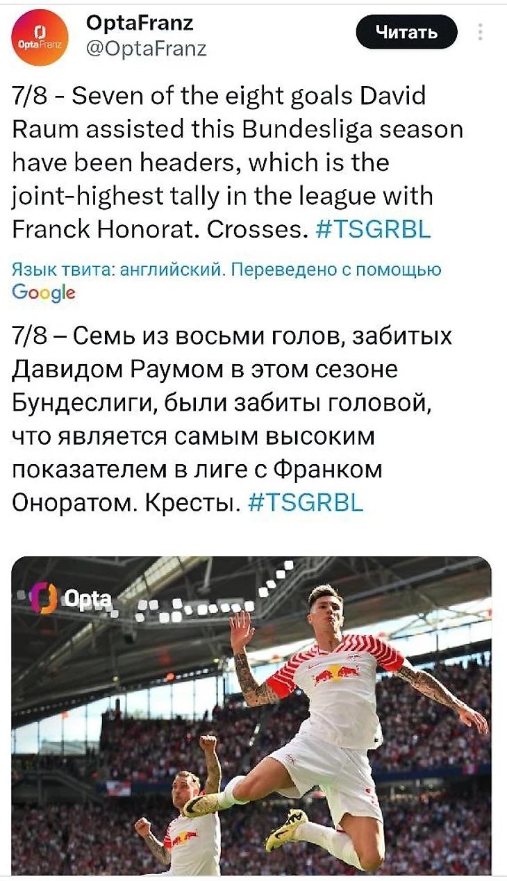 - Семь из восьми голов, забитых с передачи Давида Раума в этом сезоне Бундеслиги, были отправлены в ворота соперника головой.