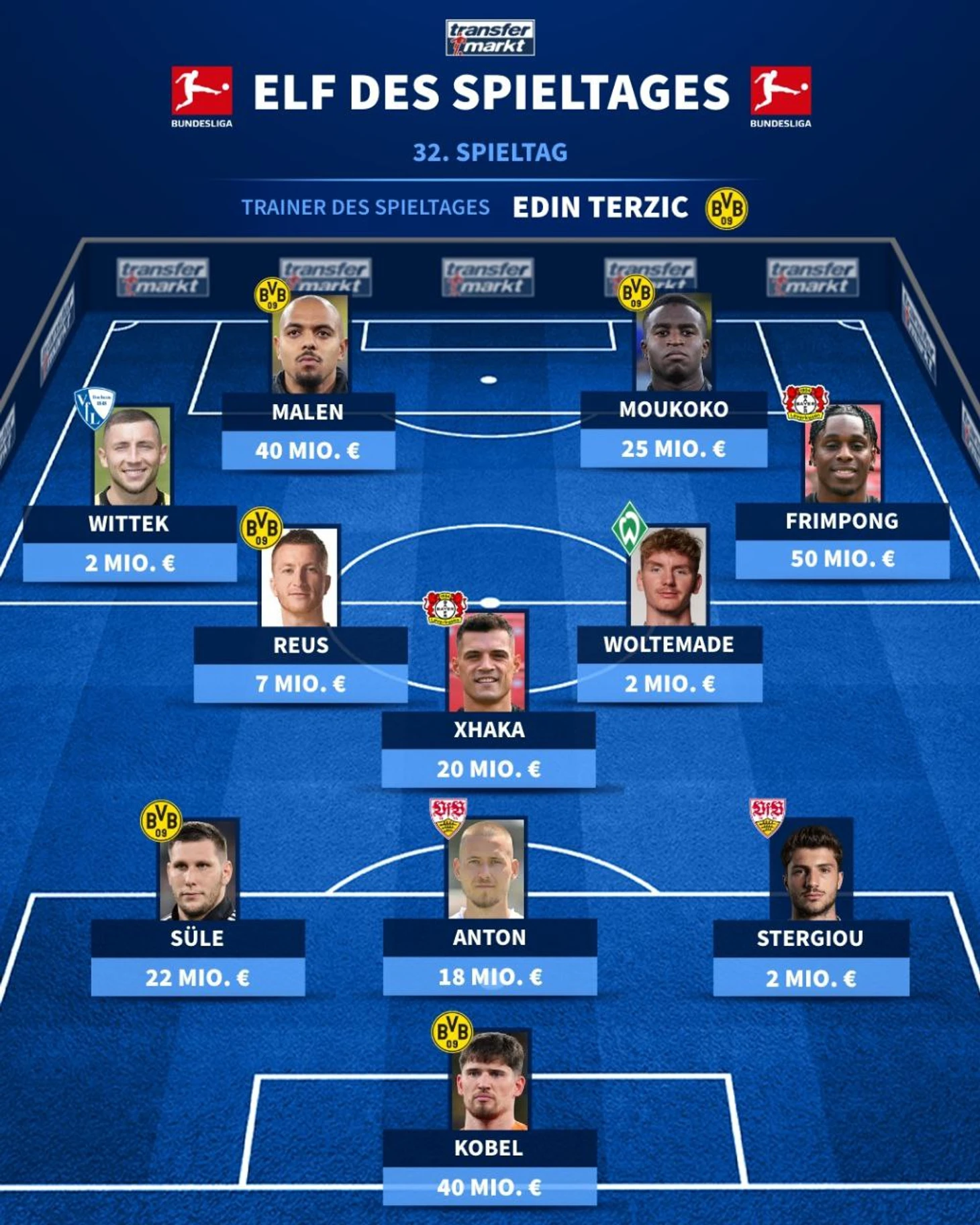 - Йорб Вертессен забил гол с наименьшим значением xG в 32-м туре Бундеслиги (2,1).