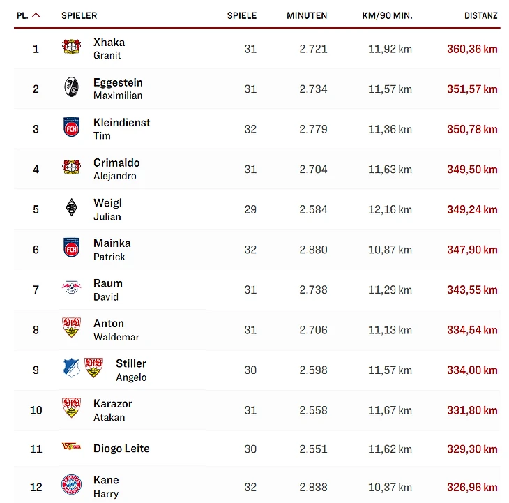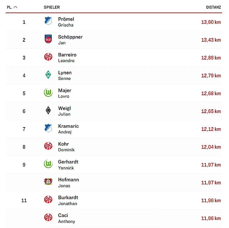 *игрок – кол-во игр – кол-во минут – в среднем км за 90 мин – всего км