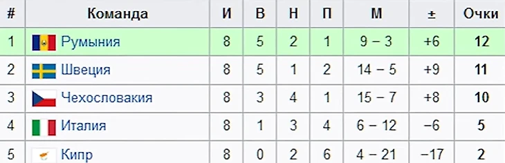 А вот сборная Италии, на секундочку действующий чемпион мира, гуляла не как будто. «Скуадра» одержала всего одну победу в квалификации к ЕВРО да и ту в последнем туре, и заняла позорное 4-ое место в квинтете с Румынией, Швецией, Чехословакией и Кипром.
