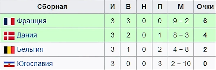 По итогу таблица группы А обретет следующий вид, очень жаль будет югославов, и в первую очередь не из-за спортивного результата. Все в той же игре с Францией их врача Миленовича схватит сердечный приступ, доктора будут откачивать прямо во время матча, но к сожалению в больнице его сердце остановится раз и навсегда.