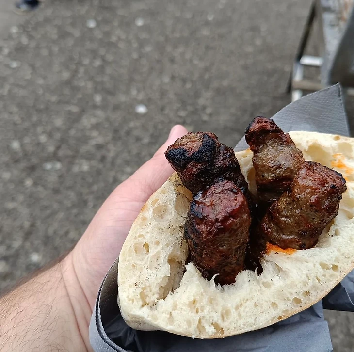 Для тех, кто любит что-то погорячее, есть отличный кебаб в белом батоне. Стоимость этой вкуснятины 3,50 евро.