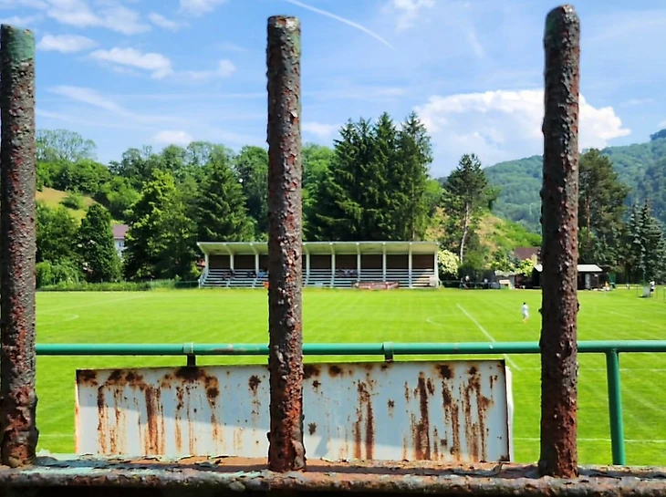 Название площадки очень звучное «Waldeslust», что в переводе с немецкого означает «лесная страсть». Старенький домик был переделан под футбольные раздевалки.