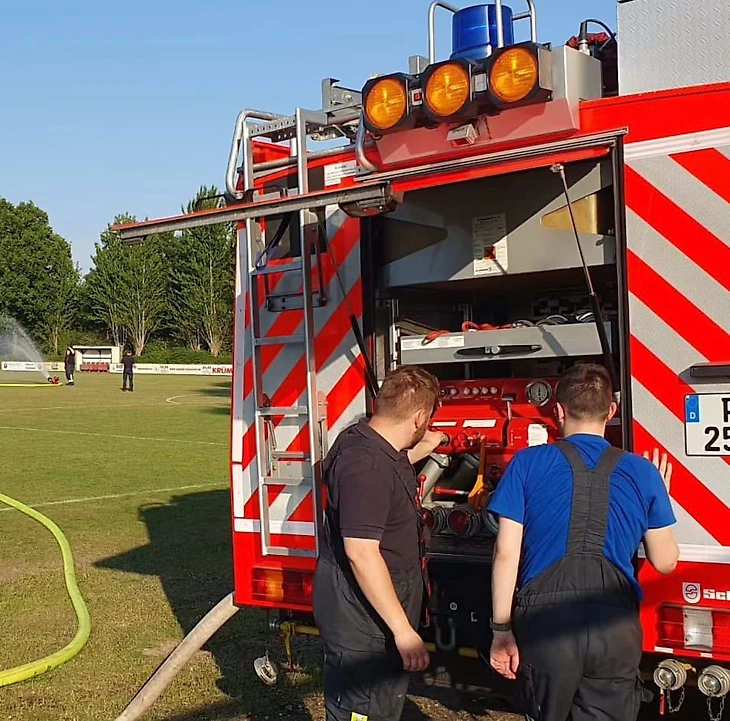 Пару слов об атмосфере. Стадион с натуральным густым газоном. Иногда подводит система орошения, но на помощь сразу приезжают пацаны из пожарной части и из брандспойтов поливают газон.